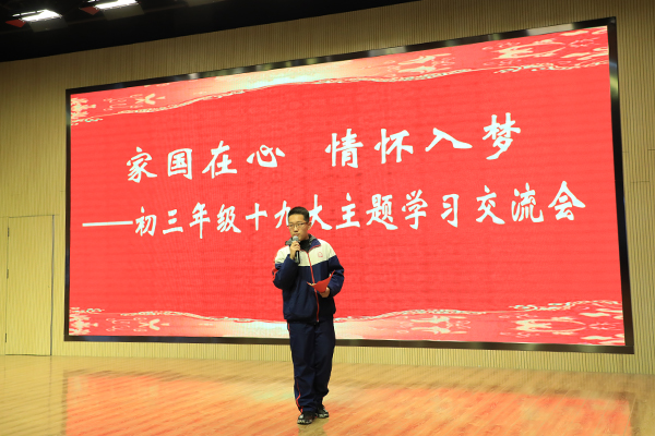 为进一步让学生学习内化十九大讲话精神,让学生拥有家国情怀的精神品质,在十九大刚刚闭幕之际,我校初中部三个年级分别举行主题演讲比赛,交流学习十九大感悟,分享研究成果。