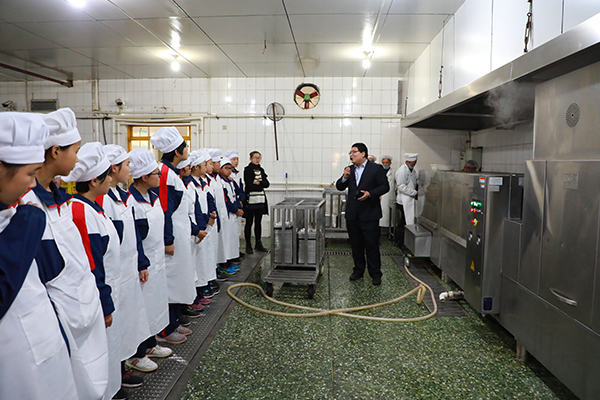 活动前,学校餐厅孙键鹏老师首先对本次活动进行了简单的介绍,并对注意事项和安全进行了强调。随后,同学们满怀期待走进餐厅厨房,参观了食堂仓库、切配间、消毒间、加工间、炒菜间等,在参观中同学们加深了对食堂工作的了解,感受到了餐厅老师工作得辛苦。然后,同学们来到制作间在餐厅老师地帮助下,分小组进行包馄饨 体验,每个小组都不甘示弱,埋头苦“包”,不一会,形状各异的馄饨就呈现在了大家眼前。活动结束后,同学们就本次活动的成果进行了展示,交流了感悟与收获。整个过程,同学们积极参与,虚心学习,欢声笑语不断,每个人都收获了劳动得幸福。孙键鹏老师呼吁同学们在今后的学习生活中,要热爱劳动,尊重劳动成果,努力成长,将来能够成为国家的栋梁之才,为国家做出应有的贡献。