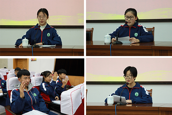 大会由谢一萌同学主持,全体起立,奏国歌,第四届学生代表大会第一次会议开始。学生代表大会委员长李维凯同学向学校领导和委员们汇报了常委会近期工作。2017届学生会主席顾兴正同学汇报了近期学生会工作。随后,学生代表大会提案调研委员长崔骏睿同学解答提案,秘书处副秘书长王骁尔格同学宣布关于建立监察委员会的决议,学代团团长邹欣宇同学宣布关于建立学生代表评价机制的决议。全体代表一致表决通过了学生代表会工作汇报的内容、提案解答内容及决议。