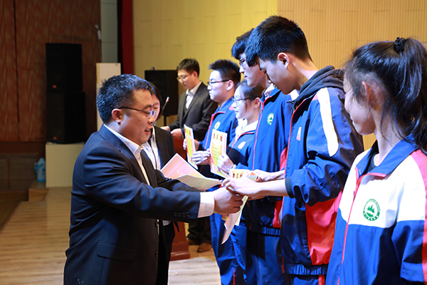 孟维杰副校长为获得优秀宿舍同学代表颁奖