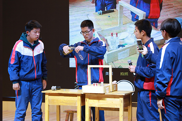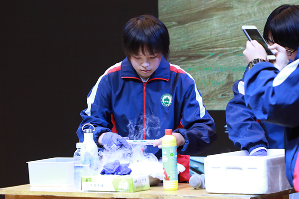 开幕式开始前播放了第六届科技节视频,让大家回忆了往届科技节的精彩活动瞬间。随后,整场开幕式以情景剧为线索,带大家一起目睹了精彩的物理、化学实验,同学们在舞台娴熟的实验操作技能和科学素养,赢得了全场师生的热烈掌声。紧接着,主持人隆重介绍了本次科技节邀请的科学家及报告主题,引发了同学们的无限好奇。学生会主席顾兴正致开幕辞,详细介绍了本次科技节的主题、理念和项目内容,并号召全体同学积极参加活动,在活动中增强动手实践能力,培养科学探究精神和创造能力。张申校长发表热情洋溢的致辞,他首先对第七届科技节的开幕表示祝贺,他说:“科技节课程的核心就是引领大家对科技、科学的学习兴趣,引发大家去探究 科学技术。”他希望孩子们都能认真参与到科技节活动中去,勇于质疑,积极探究,大胆实践,主动成长,将来能够从事科学事业,为人类文明的发展贡献二中人的智慧。最后,全体师生一起观看了第七届科技节宣传视频,情景剧组导演宣布第七届科技节现在开幕。