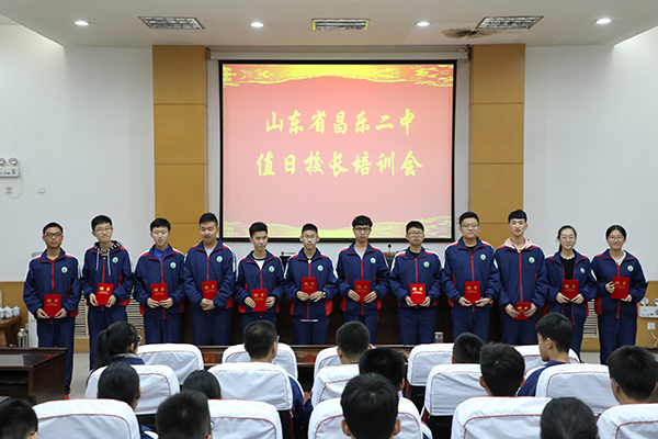 会上王博主任带领大家一起学习了《山东省昌乐二中“值日校长”工作规范》,让大家熟知了值日校长工作标准和行为规范。孟维杰副校长为每一位值日校长颁发了聘书,孟校长对全体值日校长进行了培训,他强调,值日校长是全校学生的楷模,每一位值日校长要严于律己,以身作则,向全校师生展示良好的形象。利用好值日校长这个好的平台,承担责任,主动成长,发现问题,解决问题,提升自主管理水平,帮助学校发展的更好。