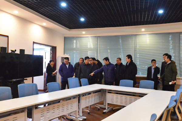 评估小组一行,参观了校园,在怡心轩一楼会议室进行座谈,听取了学校副校长解宝修对我校开展“互联网+教育”工作情况的汇报,对学校在组织机构、教师成长、学生发展等方面与互联网的深度融合和教育教学的创新做法给予了高度评价;随后评估小组一行实地查看学校远程视频会议功能室、录播教室、通用技术功能室等教育教学设施,对我校先进的教学设施和规范的管理方式给予了好评。