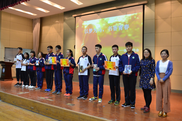 活动中,参赛同学们以饱满的热情,慷慨激扬的话语,用充沛的情感为全体师生们献上了一场精神盛宴,用演讲的方式表达了自己对梦想、青春与阅读的理解和向往,字字句句都展示出了他们积极的人生态度和对美好生活的追求。在场的所有人被同学们精彩而富有感染力的演讲所感动,时时响起阵阵掌声。经过评委的现场打分,评选出了本次演讲比赛中表现优异的同学,在场的语文老师们为获奖学生进行了颁奖。最后,宋秀宏主任对本次活动进行了总结。