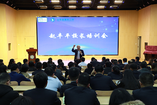 为提升老师们的课程水平,更好地帮助学生成长。12月19日下午,山东271教育集团总校长赵丰平在学校一号报告厅为全体教师作培训。