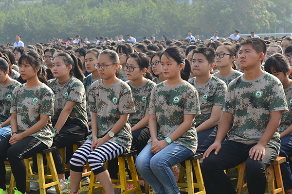 9月1日上午,我校在运动场隆重举行2017级新生军训营开训典礼,2700余名身着迷彩服、英姿勃发的参训同学将开始军训生活。县人武部政委包艳伦,某部队首长及56名教官,执行校长张申等学校领导出席。