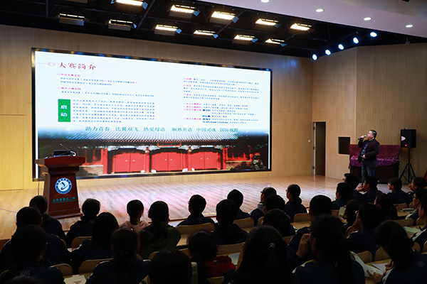 讲座中,谌博士以《创意写作与好文章》为题,从创意写作是什么、修辞的意义、阅读与写作、命题与解题等四个方面进行了讲解,谌博士在讲座中深入浅出、高屋建瓴、引经据典,让每位在座的师生沉醉其中,为我校师生送上了一场关于文学与写作的盛宴。张民主任就“北大培文杯”作文大赛参赛有关事宜做了详细介绍。此次讲座对我校学生写作水平的提高具有很强的指导意。