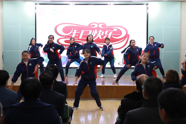 生日会开始,舞蹈社团的同学们为老师们献上一场精彩的舞蹈《suger》,随后,张申校长发表了热情洋溢的致辞,祝愿各位寿星们生日快乐,祝老师们及家人身体健康,生活美满。他在致辞中谈到,在大家共同努力下,学校发展越来越好,学校教育成果硕果累累,希望老师们热爱教育,坚守教育信仰,为学校发展努力奉献,让我们的271教育事业再创辉煌。接下来,高三艺术专业生们为大家献上了戏曲《梨花颂》、歌曲《祖国慈祥的母亲》等,表达了对老师们的感恩之情,并祝福老师们在生日快乐。生日会期间,美术处的老师还带来了精彩的互动游戏,愉悦了老师们的身心。