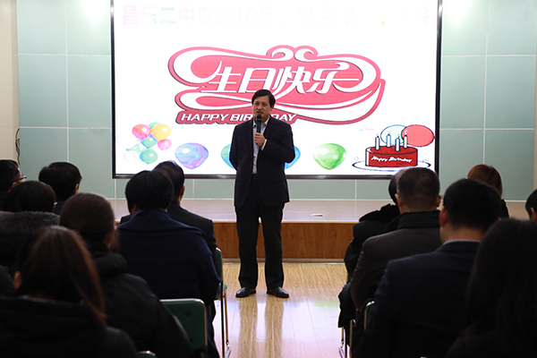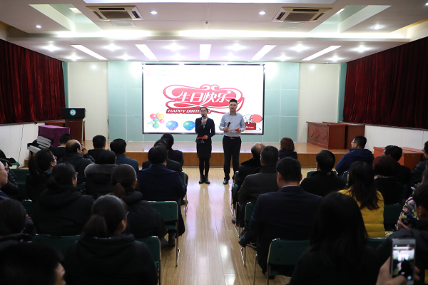 1月4日下午,我校在怡心轩二楼会议室举行集体生日会,为农历10月份、11月份过生日150位教师庆祝生日,让学校大家庭成员们在忙碌的工作之余感受快乐而温馨的家庭生活。执行校长张申,副校长刘欣、孟维杰、吕真锋、解宝修等学校领导参加生日会。