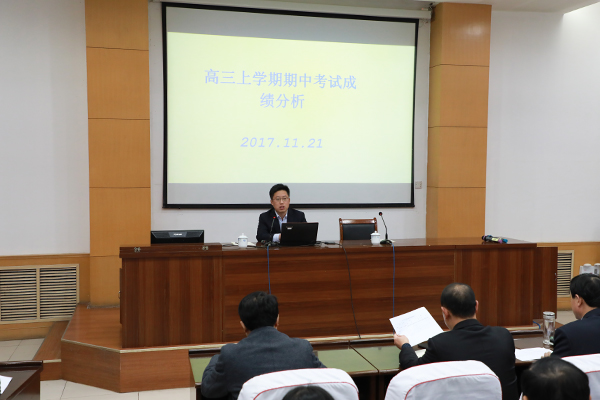 11月21日下午,我校召开高三年级期中成绩分析会,县教育局党委副书记郭新光、教研室高中科科长张玉德、学校执行校长张申、副校长王建磊出席会议,全体高三年级教师参加。