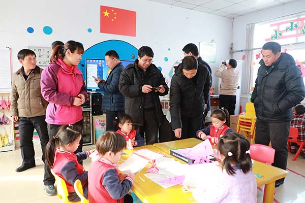 到校后,首先参观了幼儿园校园环境及教学设施,听取了赵俊荣园长对园所文化、办学理念及特色活动的开展情况。随后,实地观摩了幼儿园大、中、小班区域特色活动,参观了班级文化建设,查看了教师项目书、备课设计、特色活动开发等书面材料。张申校长对幼儿园的办学历史、办学理念、教师队伍建设等方面进行了详细的介绍。赵忠华副局长对我校幼儿园办学成果给予了充分肯定,我校先进的教育理念和一流的教师队伍高度评价。最后,园长们现场观摩了由韩娜老师执教的一节健康活动课,教研室张爱芳老师对课堂进行了点评,对课堂上的创新亮点做法给予了充分肯定。