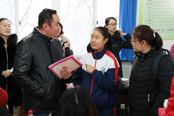 会上,家长朋友们一起观看了学生成长电子相册和2017年学校年终专题片,通过图片与视频了解了孩子们在校的成长和变化。随后,张申校长向家长朋友汇报了一年来学校的各项教育教学工作,从牢固树立爱与责任的价值追求,努力做有灵魂的教育及狠抓四个核心来实现全面育人方面进行了全面、系统的阐述。张校长与家长们一起就学生的成长进行了交流,希望通过家校共建,携手同心,帮助孩子们更好的成长。张校长在会上还对孩子们的假期生活进行了指导,希望家长朋友们能够多与孩子们进行沟通,与孩子们一起成长,共同度过一个充实而有意义的假期生活。随后,张永昕同学的妈妈作了发言,她对老师们的辛勤付出表示感谢,围绕如何做好家庭教育作了教育智慧与经验分享。最后,滕玉香主任作了总结发言,并对孩子们的假期生活及假期安全等工作进行了具体安排。
