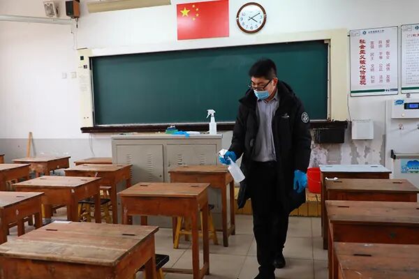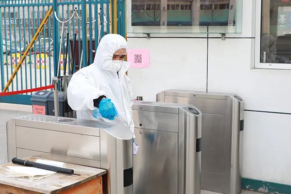 门卫老师进行入校前消毒