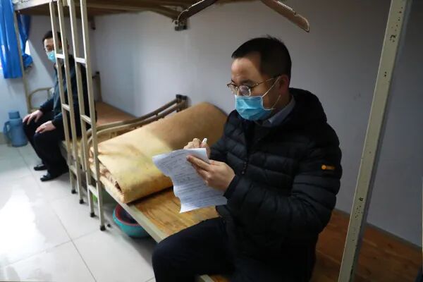 舍长逐个进行体温测量
