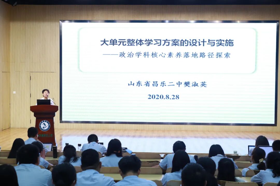 大单元整体学习是落实学科核心素养的有效途径。政治学科主任樊淑英以《大单元整体学习方案的设计与实施——政治学科核心素养落地路径探索》为题,从为什么要进行大单元整体学习、何为大单元整体学习、大单元整体学习方案的设计与实施、大单元整体学习四个方面作了系统培训。