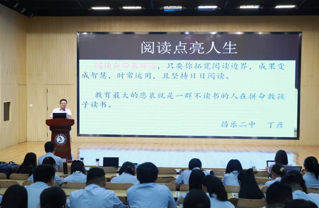 阅读是学校第一课程,读书让我们成为最好的自己。会上,丁彦主任以“阅读点亮人生”为题,对如何选择阅读书目、如何读懂一本书、如何引领学生阅读以及阅读课程的价值意义作了详细介绍。他提到,教育最大的悲哀就是一群不读书的人在拼命教孩子读书;阅读会带来好运,只要你拓宽阅读边界,成果变成智慧,时常运用,且坚持日日阅读。