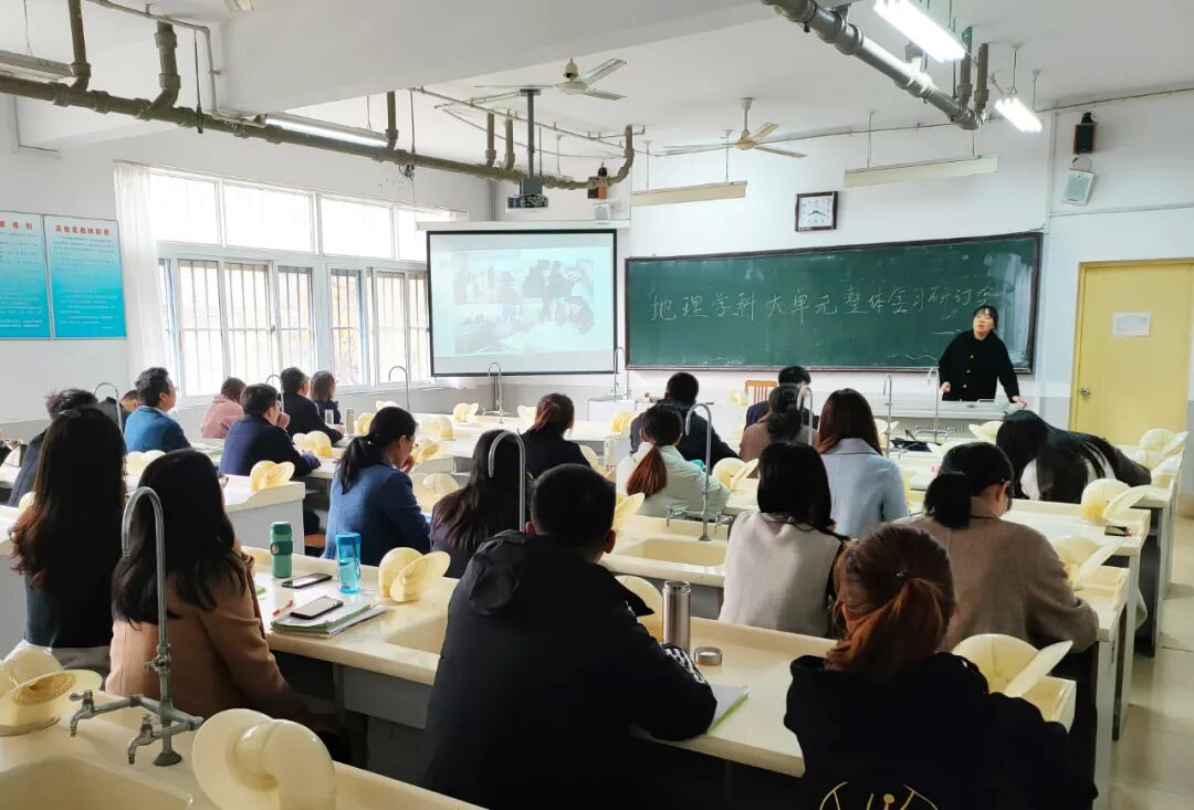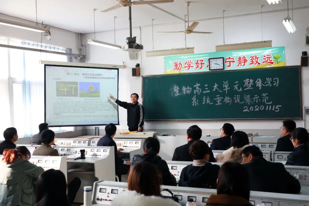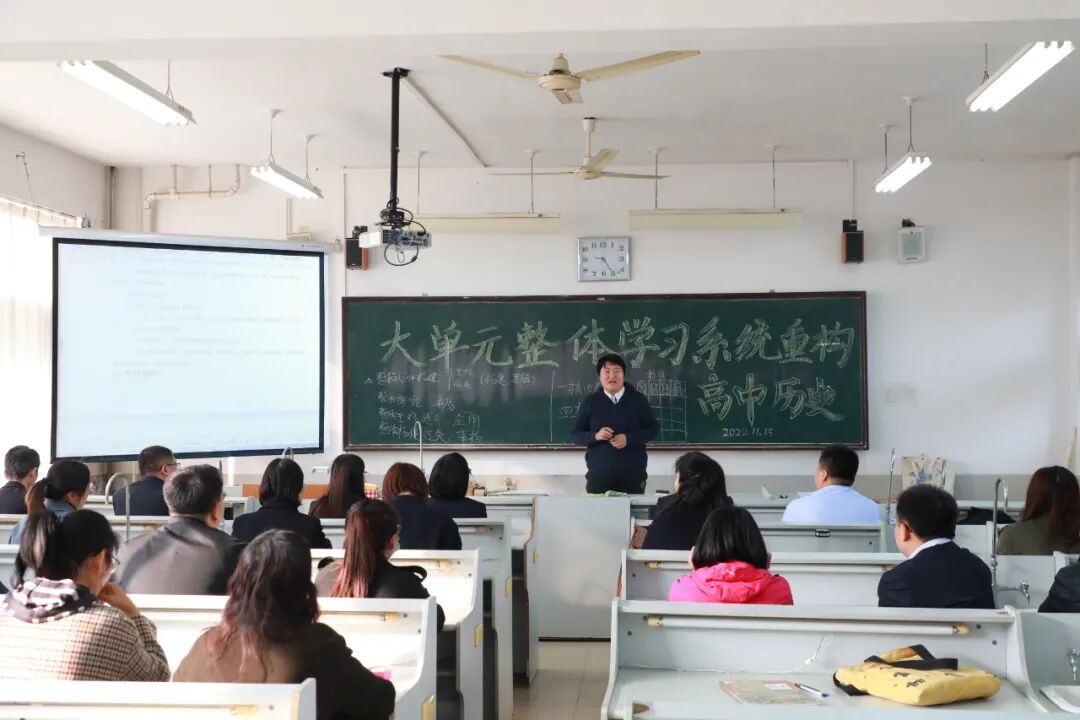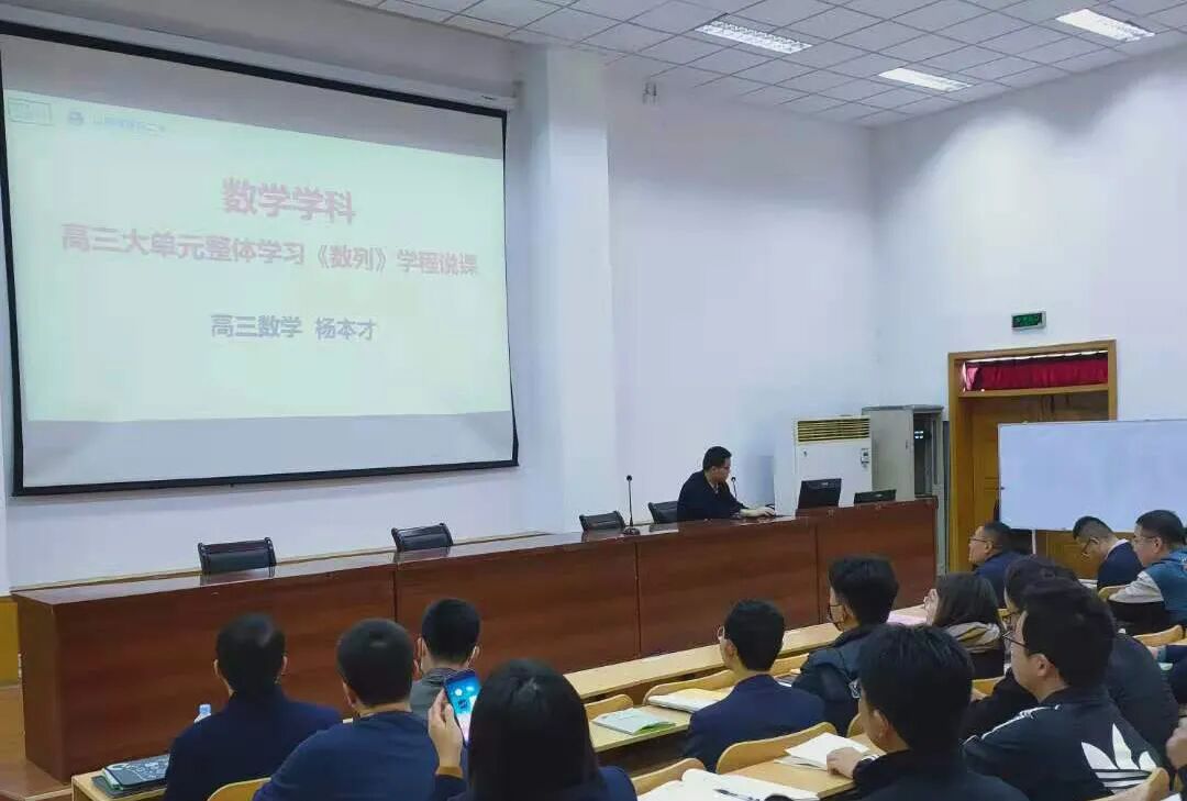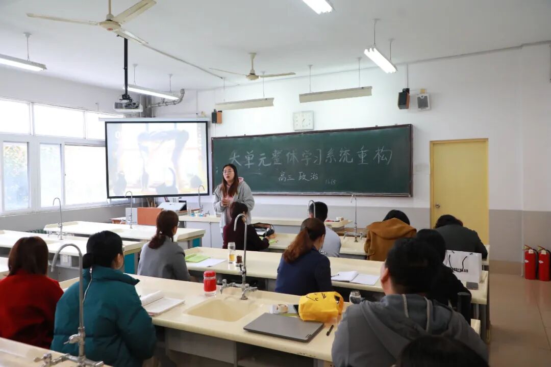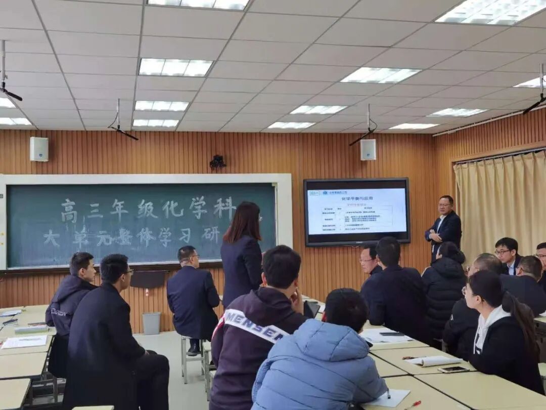 在充分研究的基础上,各学科组织开展大单元整体学习系统重构案例展示研讨活动。活动中,首先由一名高三老师对一个大单元整体学习系统重构案例进行展示,从大单元整体认知构建、整体探究、整体迁移提升、整体构建过关四个方面交流单元整体设计思路与过程内容,充分体现以学生为中心,以学生思维能力提升为主攻方向,注重学习过程的整体性、系统性和逻辑性。学科内其他老师积极参与听课学习,进行头脑风暴,反复讨论研究,发挥集体智慧,不断完善提升,创造形成样板。张申校长、吕真锋副校长等学校领导深入各学科与老师们一起研究,现场培训指导,引领提升。