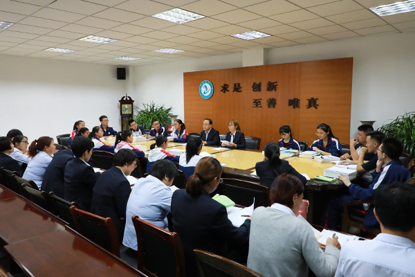 为更好地学习、使用整合课程文本,提高学习效率,9月26日晚,我校在海纳楼五楼会议室开展整合课程文本学习使用调研活动,刘欣副校长出席,各年级老师代表、学生代表参加,教师发展中心徐永胜主任主持。