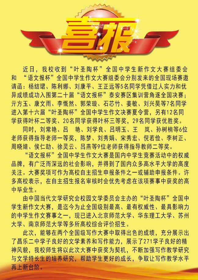 喜报|我校12名学生入围“语文报杯”与“叶圣陶杯”作文大...