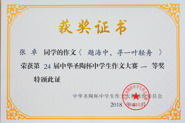 祝贺我校师生写作捷报再传! 近日,我校师生收到中华圣陶杯大赛组委会发来的通知:张卓、康佳仪、王震寰、孔璐岩、付安娜、邵静文、张姝惠等7名同学获得第24届中华圣陶杯中学生作文大赛复赛一等奖,邱添琪、张一诺、刘祥龙、徐一博、秦振宇 ...
