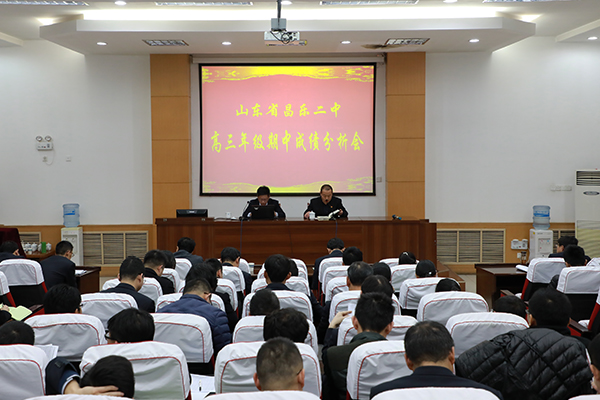 11月21日下午,我校召开高三年级期中成绩分析会,县教育局党委副书记郭新光、教研室高中科科长张玉德、学校执行校长张申、副校长王建磊出席会议,全体高三年级教师参加。