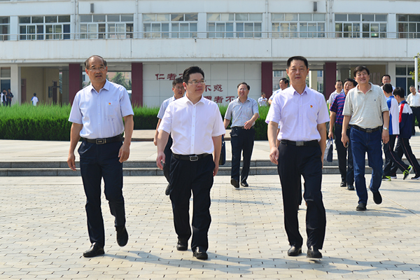 9月15日上午,济宁市教育局长高广立一行44人来我校考察高中教育教学工作,潍坊市教育局党委委员、副局长刘海涛,县教育局党委书记、局长任瑞成,山东271教育集团总校长赵丰平等有关领导陪同活动。