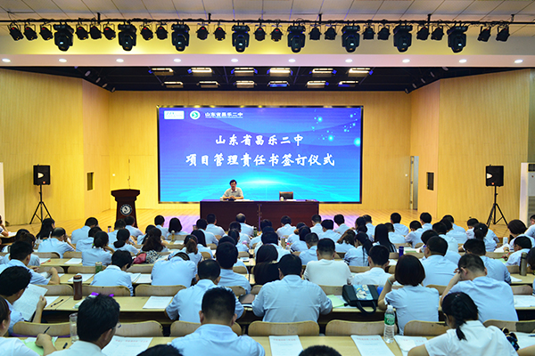 8月28日上午,我校在1号报告厅召开全体教职工大会,隆重举行新学期项目管理责任书签订仪式,执行校长张申分别与各年级、各中心项目管理责任人签订项目管理责任书,各位项目管理责任人代表自己的团队分别作出表态发言。