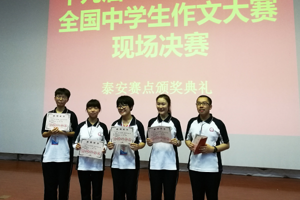 由团中央学校部、语文报社等单位联合举办的第19届“语文报杯”全国中学生作文决赛在泰安二中举行。来自省内外近1300名同学参加比赛。我校共七名学子进入决赛,在激烈的角逐中,喜获佳绩。其中,周成英、蔡兆睿、杨舸帆获得全国一等奖,张华 ...