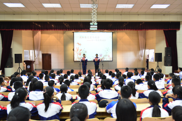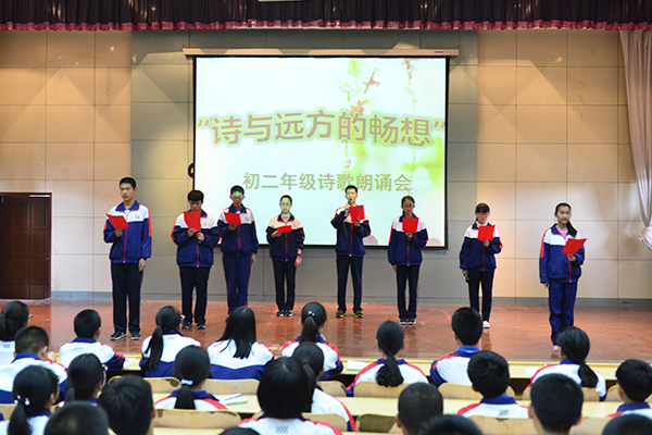 5月7日,我校初二年级在1号报告厅举行“诗与远方的畅想”诗歌朗诵比赛,全体初二年级师生参加。