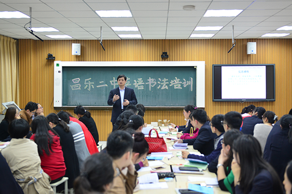 为提升英语教师的书写水平,更好的为学生提供帮助。我校在录播教室举行英语书法培训,张申校长出席活动,全体初中、高一、高二年级英语教师参加。