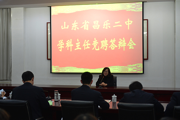 3月22日晚,我校在怡心轩一楼会议室举行学科主任竞聘答辩会活动,执行校长张申,副校长李宝森、刘欣、王建磊、滕丽红,首席教师李同顺出席,18位学科骨干教师参与竞聘。